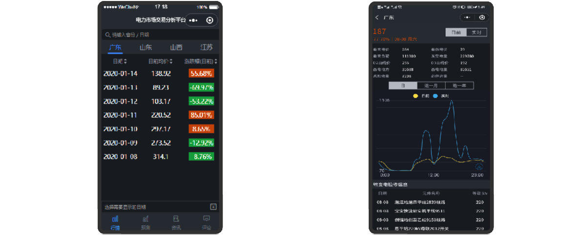 各类市场交易信息、市场资讯、负荷预测等信息实时展示。